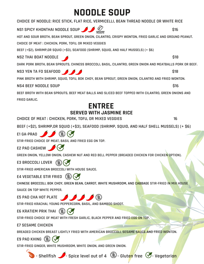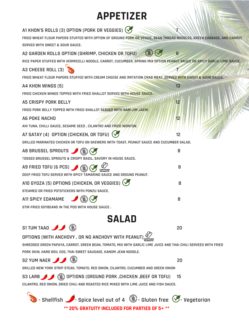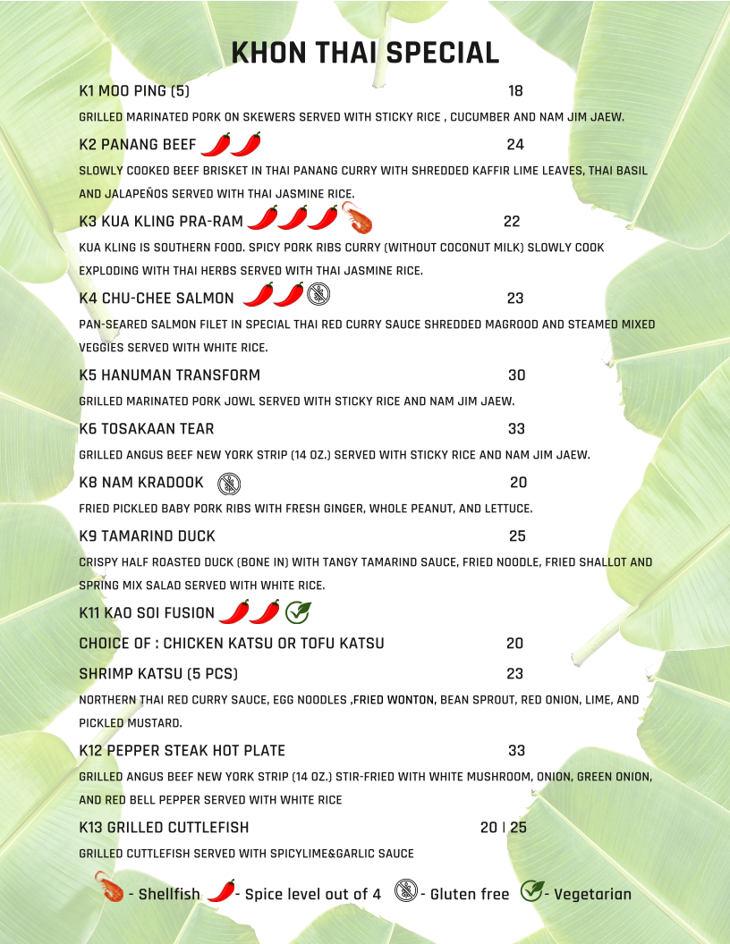KHON Thai Kitchen by Seeda Menu